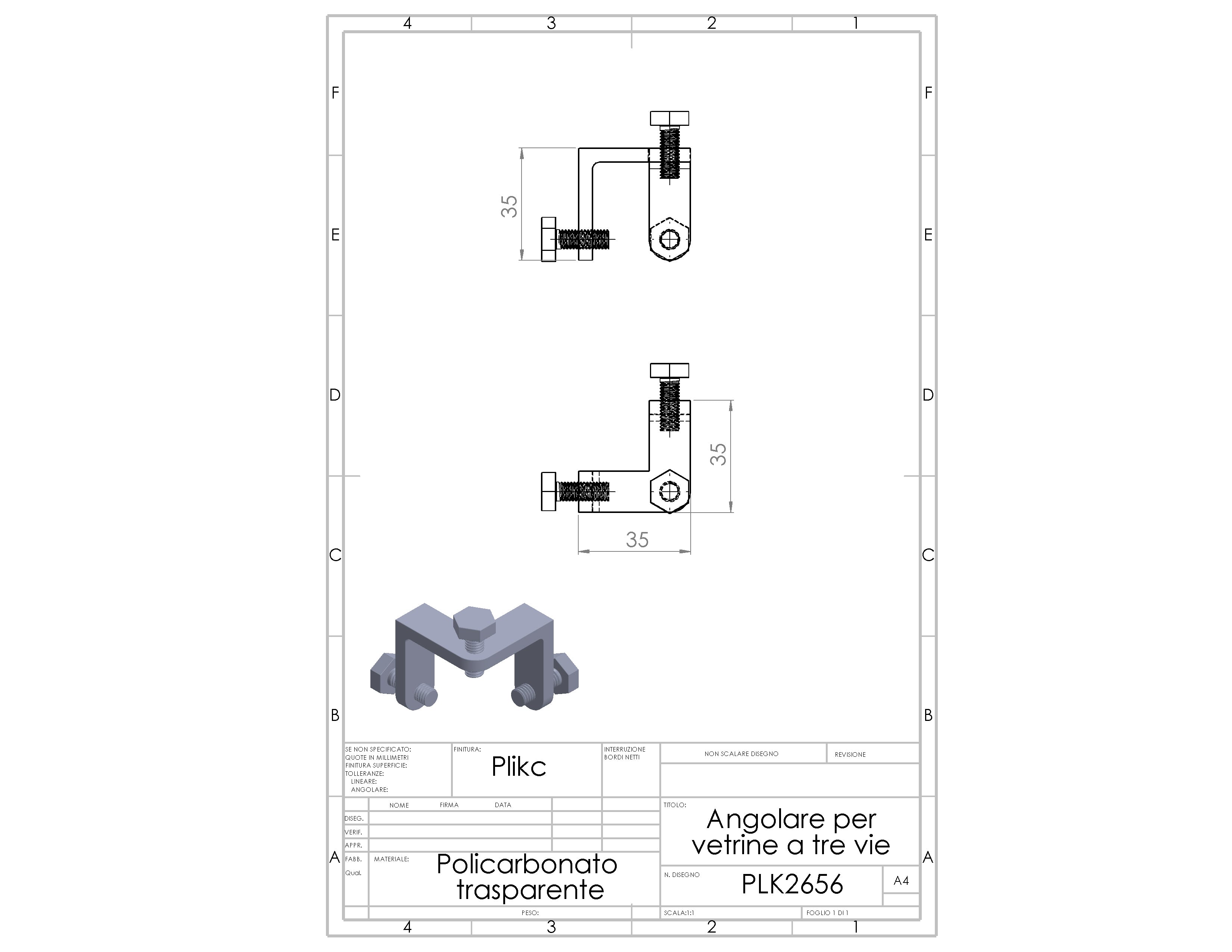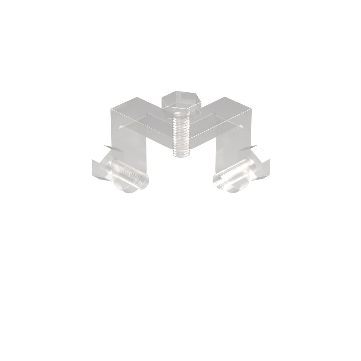 Angolare per vetrine in policarbonato a 3 vie con viti in plastica per vetri di spessore da 1 a 12 mm