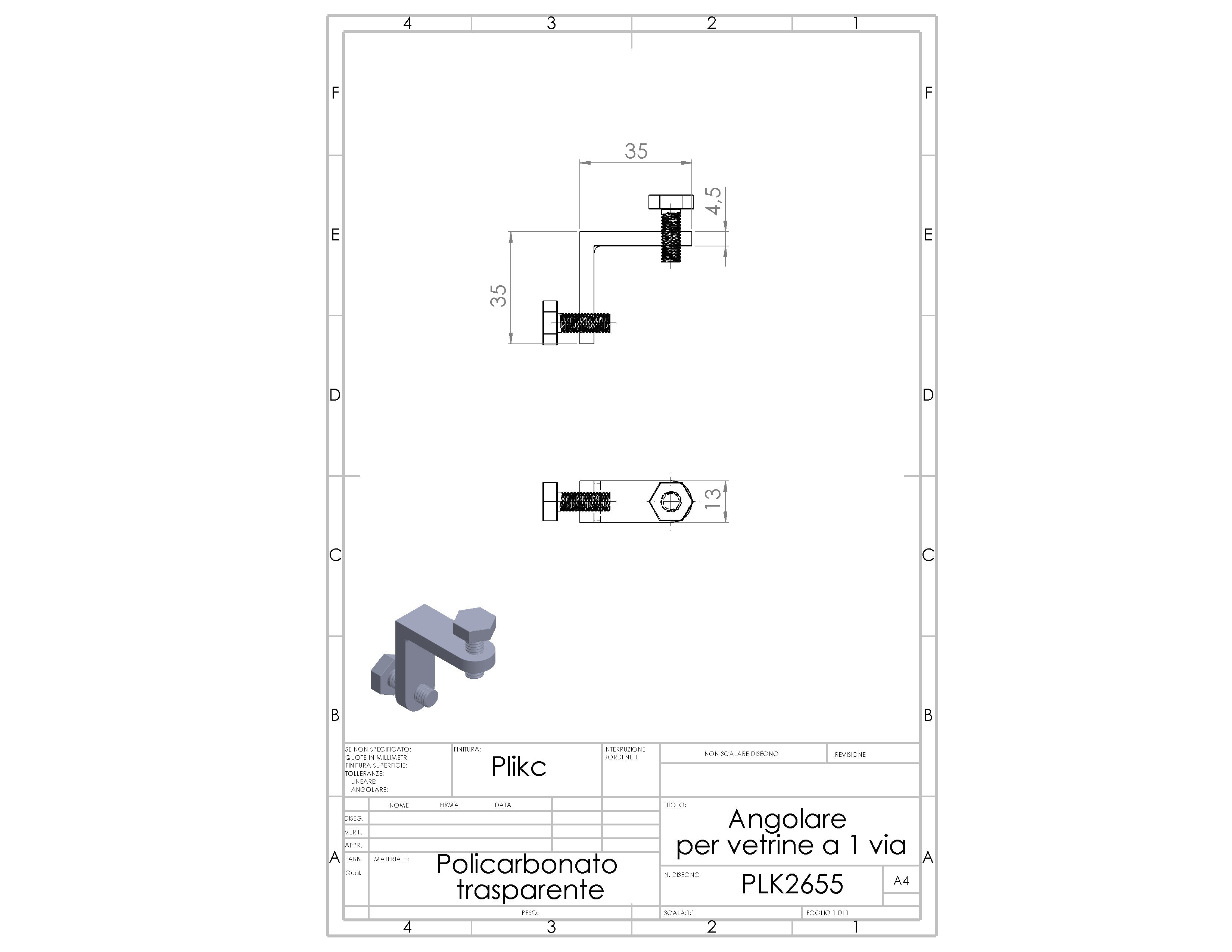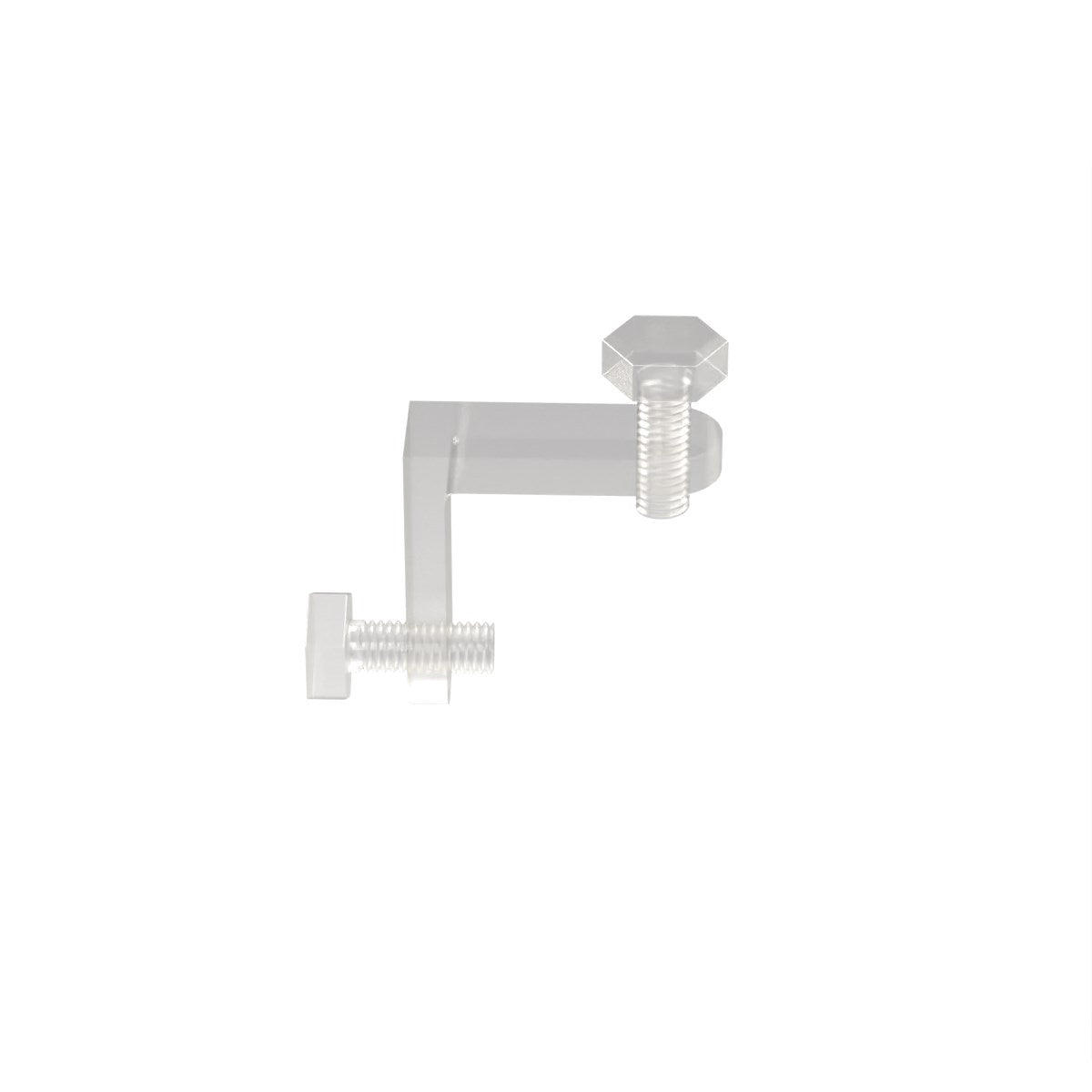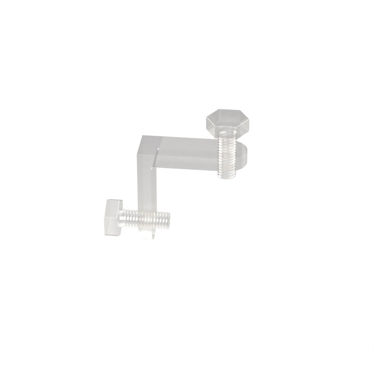 Angolare per vetrine in policarbonato a 2 vie con viti in plastica per vetri di spessore da 1 a 12 mm
