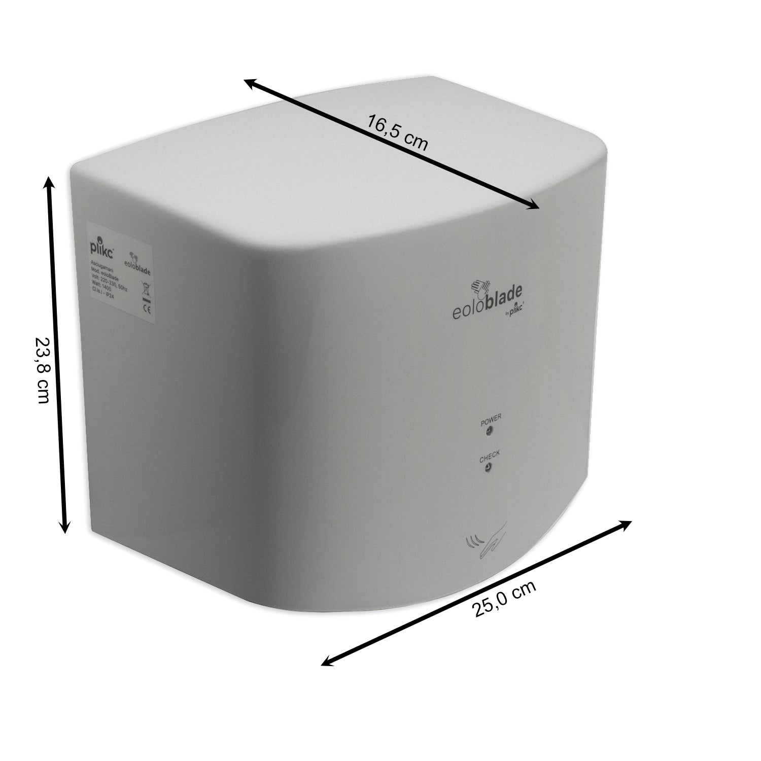 Design minimale e levigato, tecnologia a lama d’aria per un’asciugatura impeccabile e veloce. Filtro a carbone attivo, efficiente e facile da pulire. Risparmio intelligente: aria calda d’inverno, tiepida d’estate. Limitazione della rumorosità con soli 74db ad 1 metro di distanza. Si spegne automaticamente dopo 60 secondi anche se il sensore rileva ancora il movimento delle mani, evitando così l’erogazione continua dell’aria causata accidentalmente o volutamente dagli utilizzatori dell’apparecchio o dal cattivo funzionamento dello stesso, ma soprattutto evitando surriscaldamenti del motore.