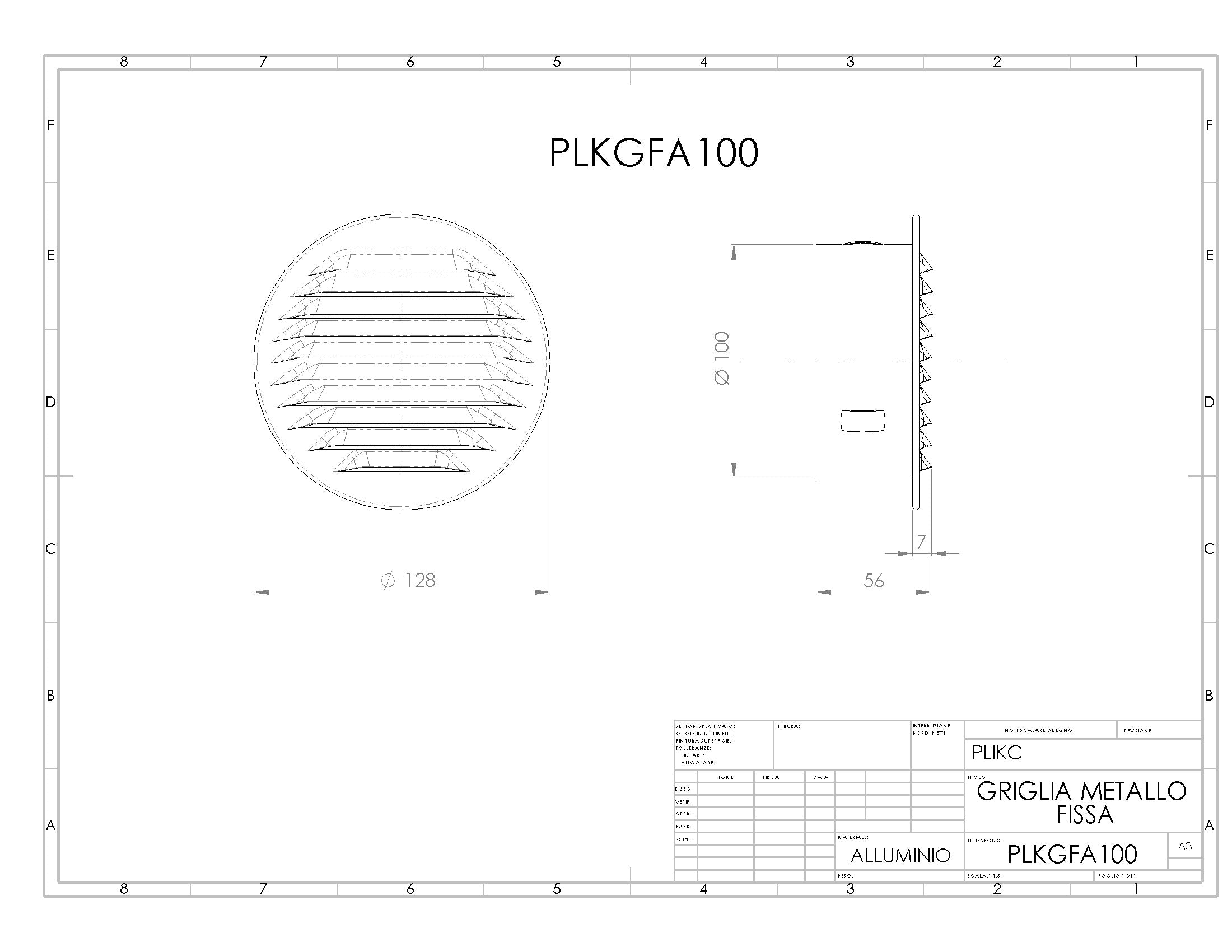 - per fori da 100mm profonda 56mm con diametro esterno della griglia di 128mm;