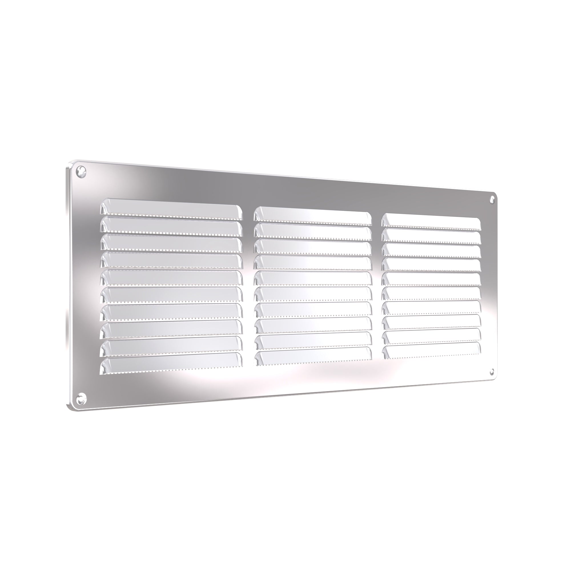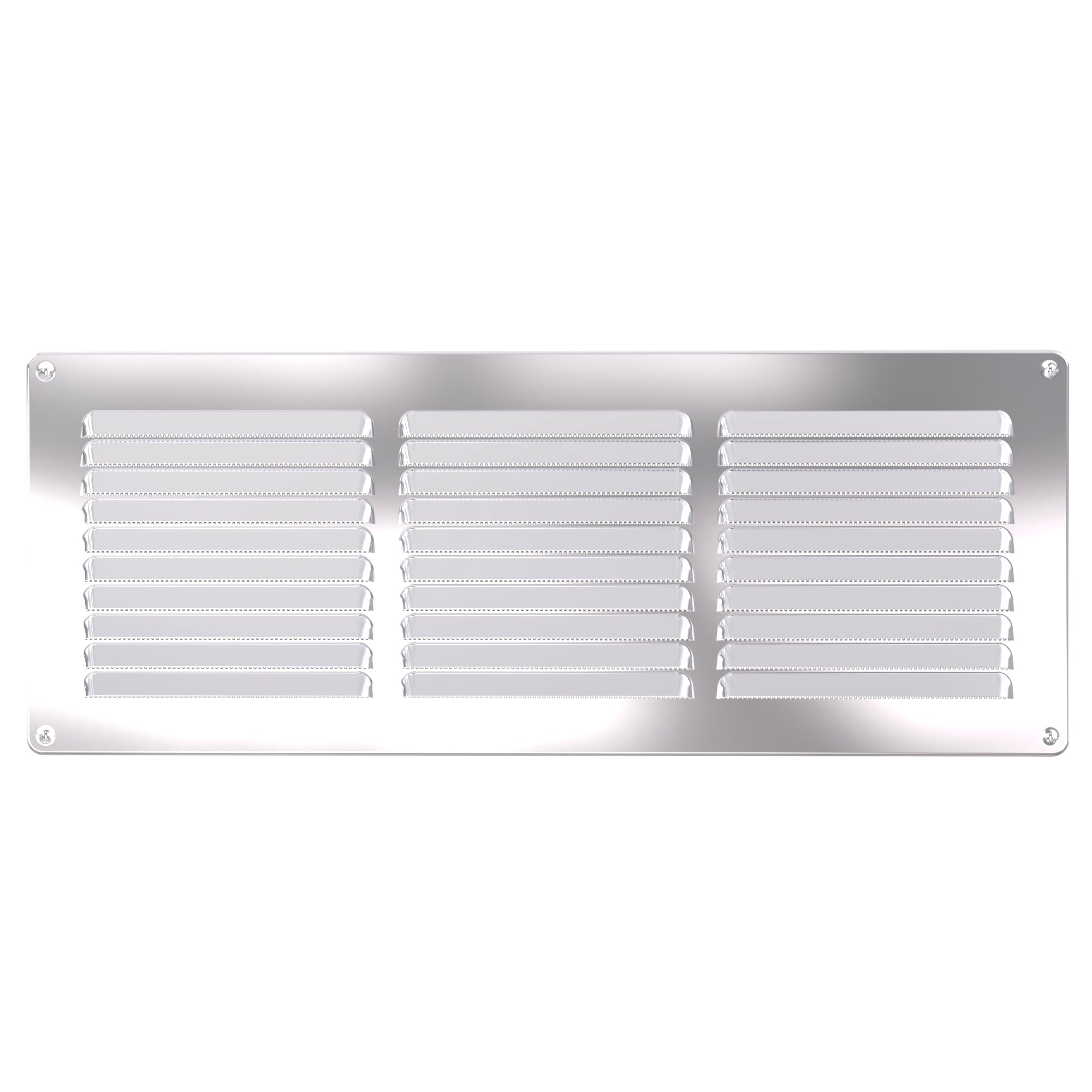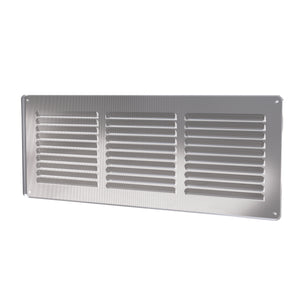 Griglia da muro rettangolare in alluminio (140x360mm) con rete antinsetto in metallo integrata. Interamente costruita in Italia, vero MADE IN ITALY di alta qualità che dura nel tempo.