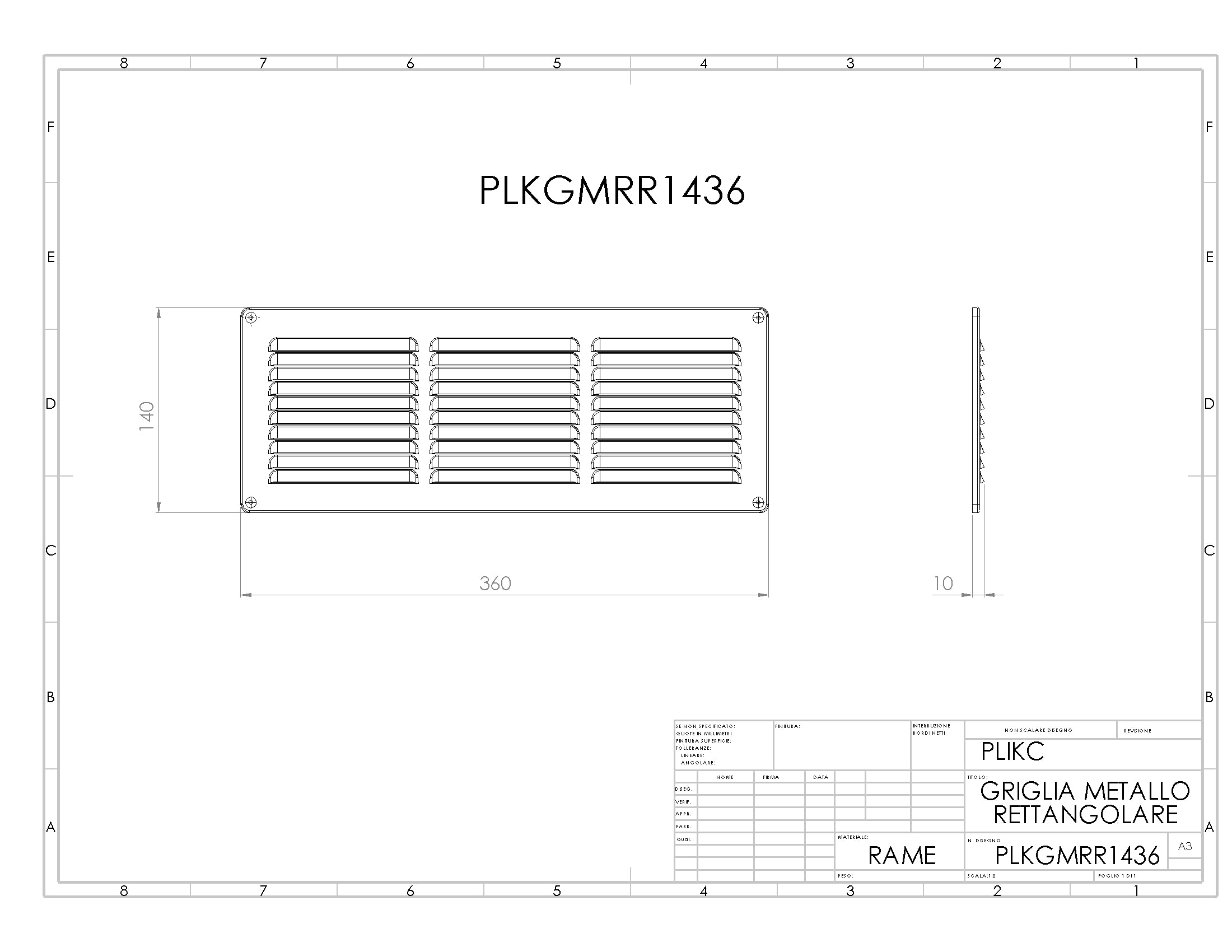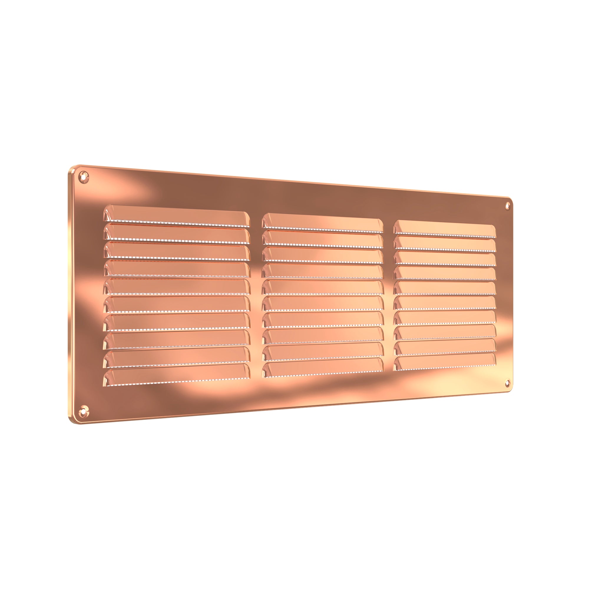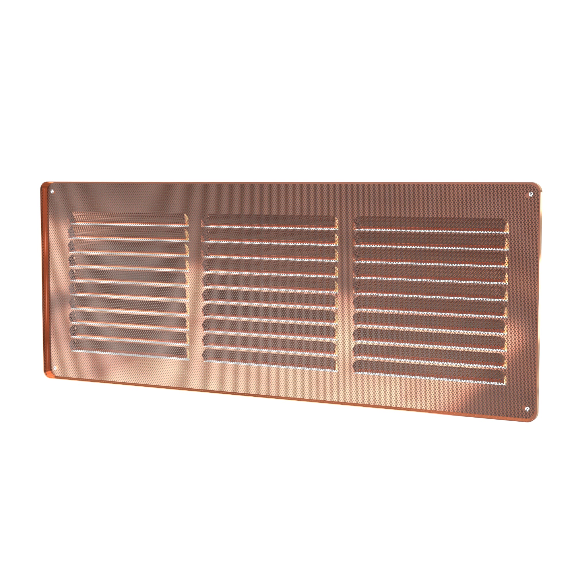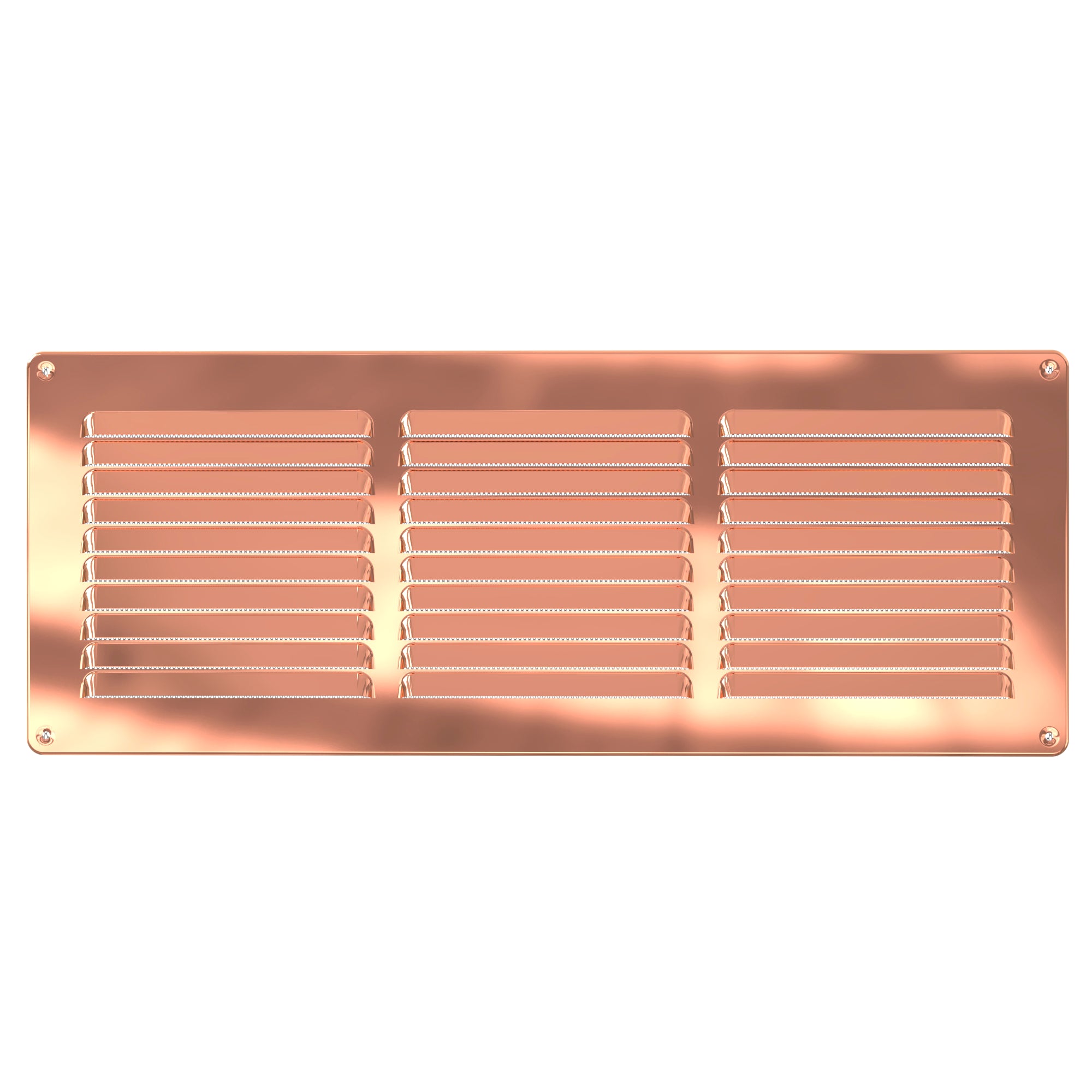 Griglia da muro rettangolare in rame (140x360mm) con rete antinsetto in metallo integrata. Interamente costruita in Italia, vero MADE IN ITALY di alta qualità che dura nel tempo.