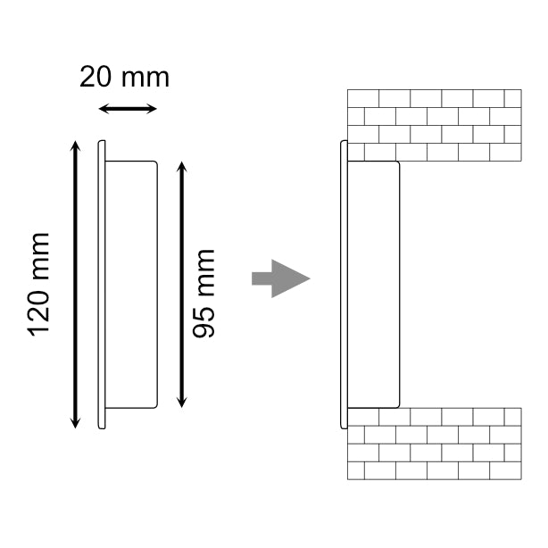 - per fori da 95mm (PLKGS100) profonda 20mm con diametro esterno della griglia di 120mm;