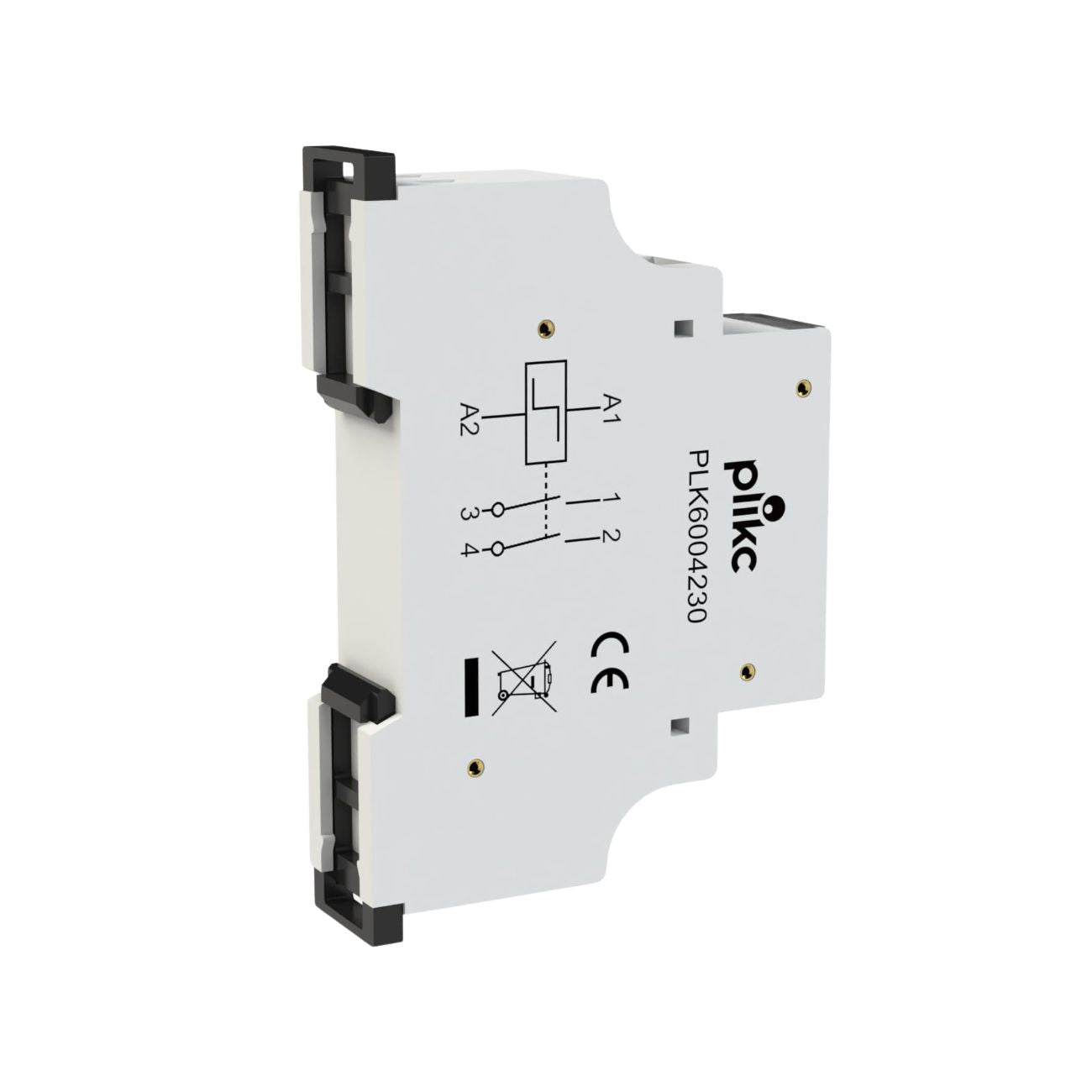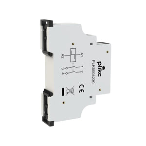 Relè interruttore bipolare elettromeccanico bistabile ad impulsi con circuito bobina e contatti separati.