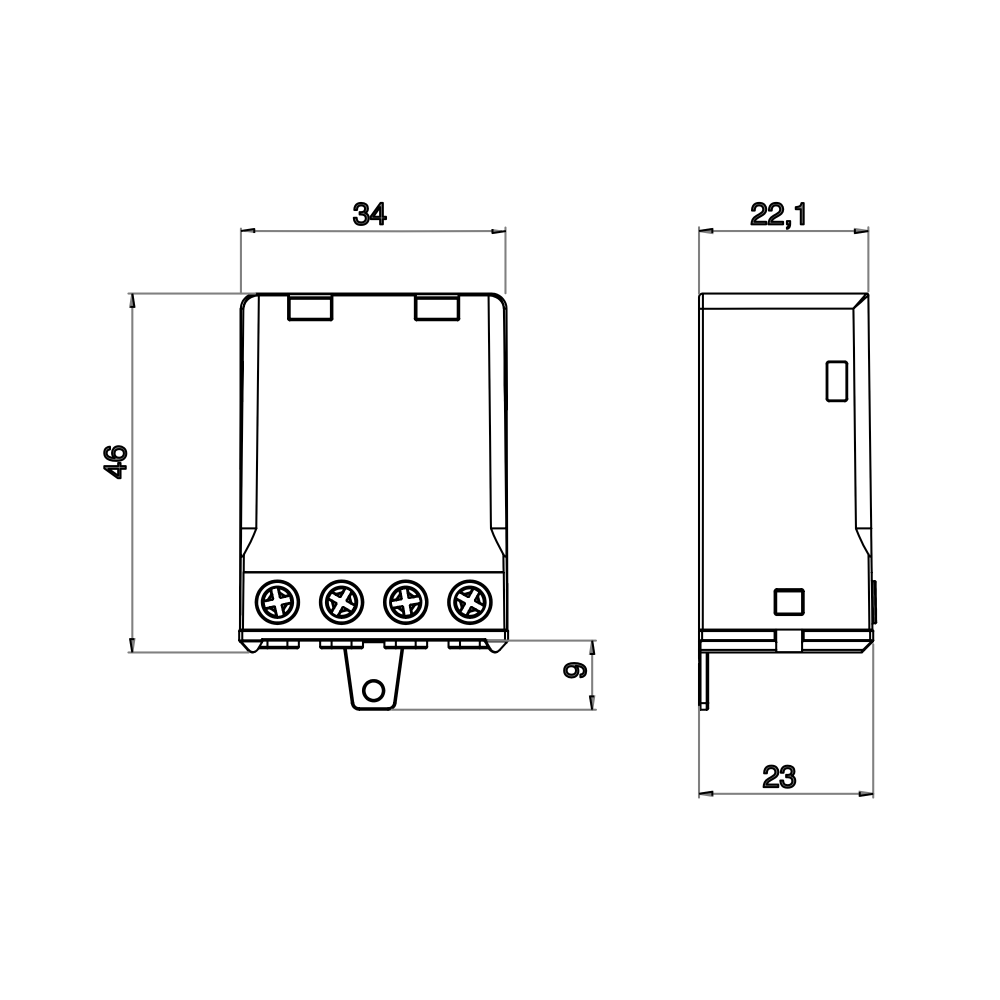 Relè interruttore bistabile elettromeccanico ad impulsi con circuito bobina e contatti ad eccitazione comune.