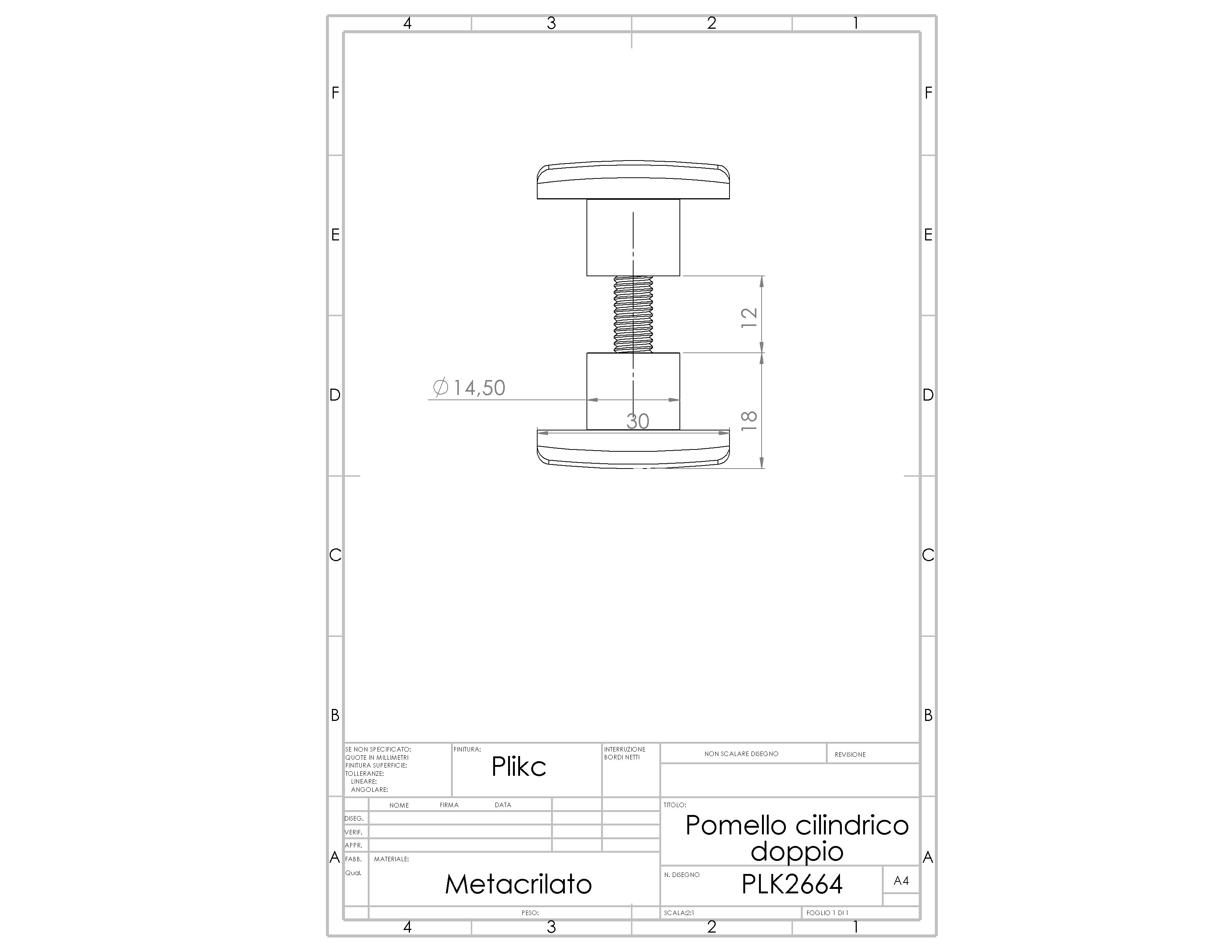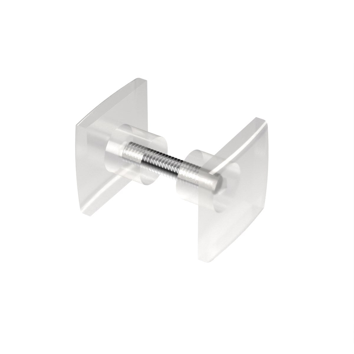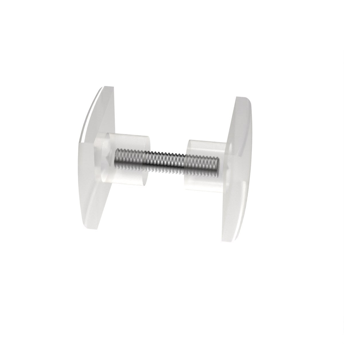 Pomello quadrato doppio con battuta in metacrilato e barra filettata in ottone nichelato per vetri di spessore da 4 a 12 mm.