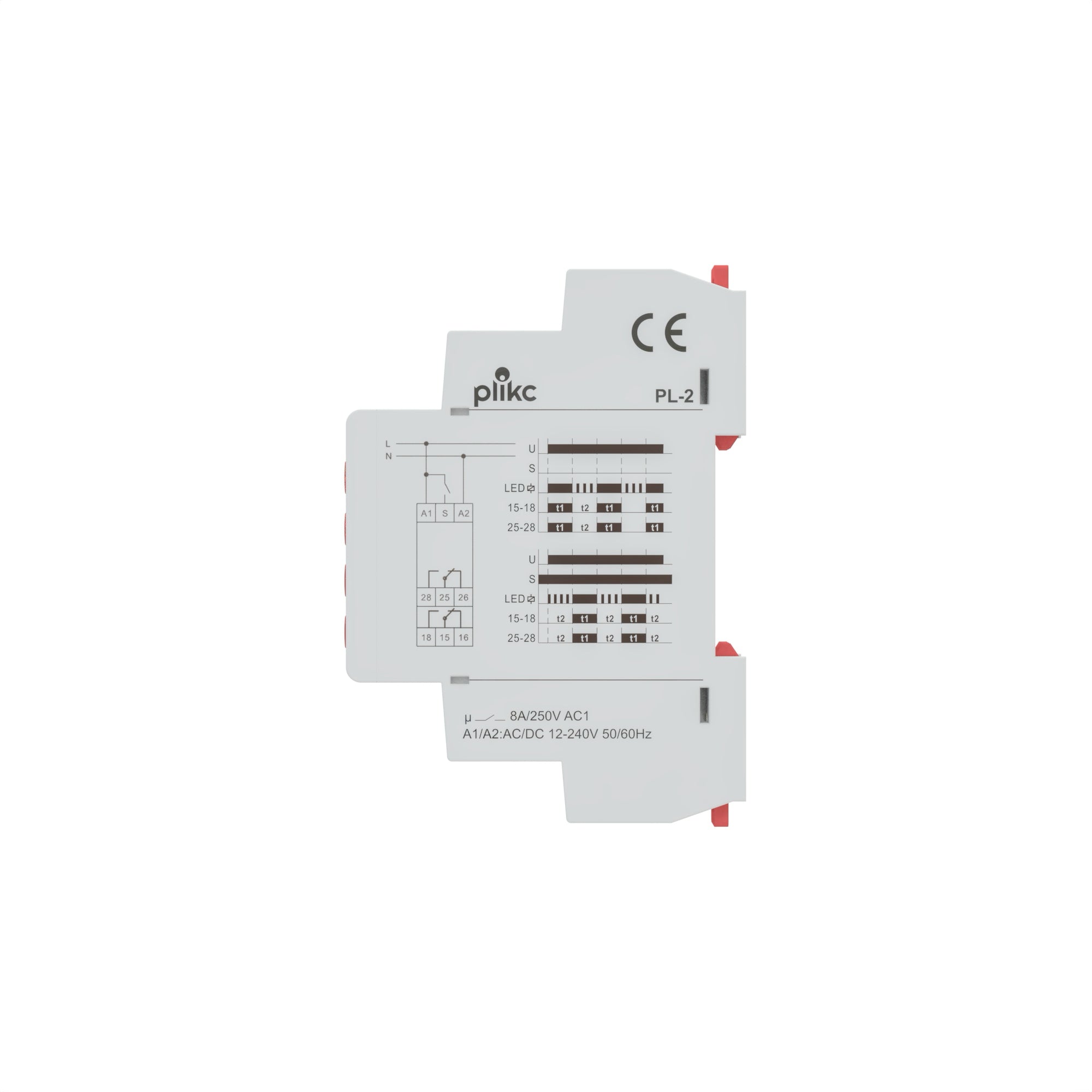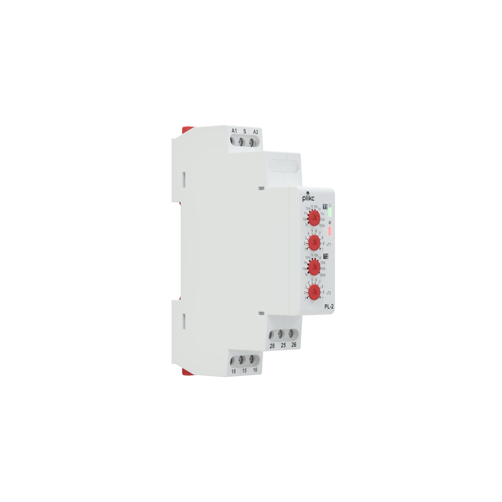 Temporizzatore ciclico pausa/lavoro con temporizzazione separata. Il pl-2 di plikc ha ha un intervallo impostabile da 0,1 secondi a 100 giorni, 2 contatti in scambio 8A/AC1 e prevede montaggio su 1 modulo DIN. Alimentazione da 24 a 240 V AC/DC. Progettato per gestire carichi elettrici che richiedono cicli di accensione e spegnimento programmabili.