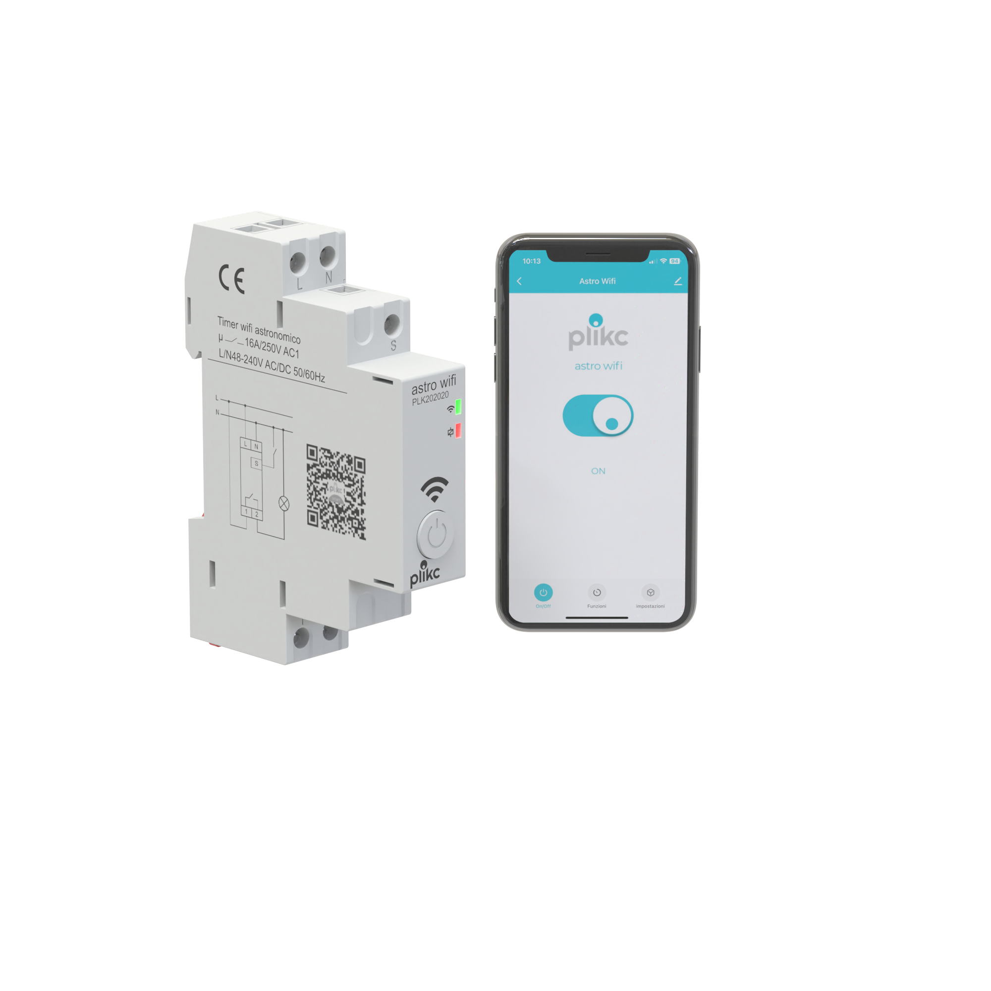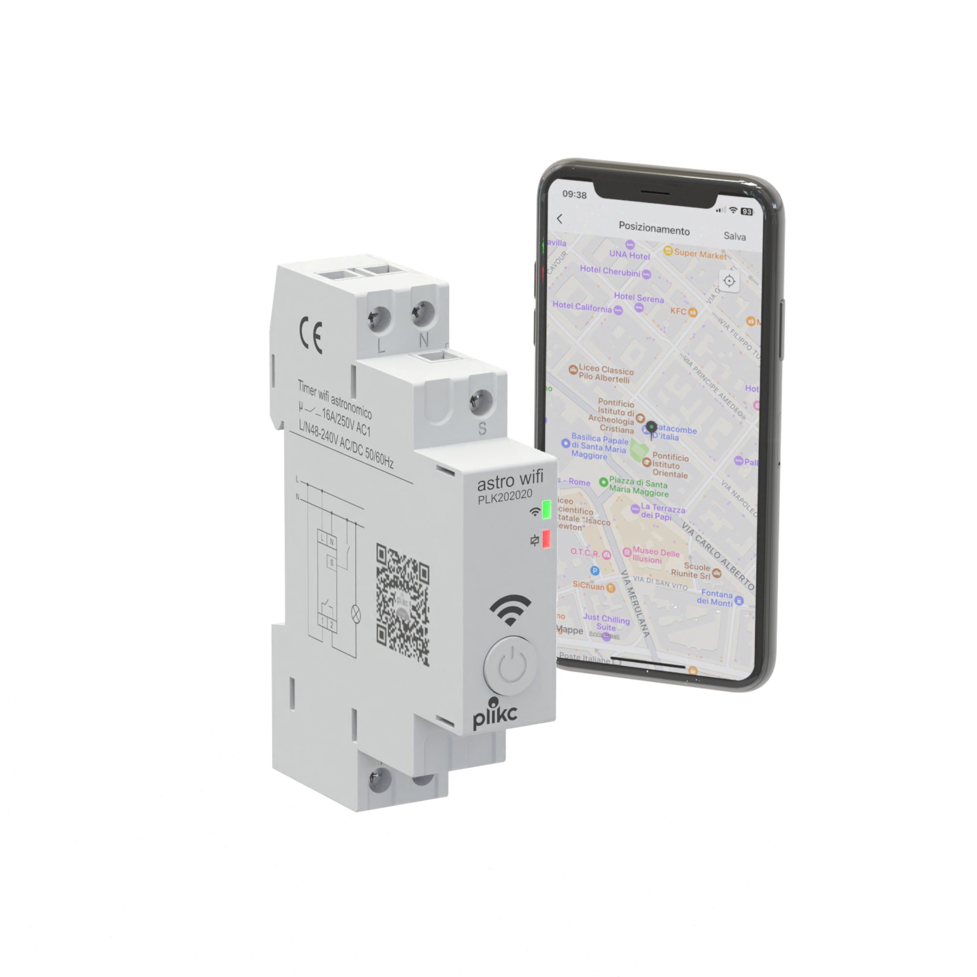 Plikc Astro WiFi è l'interruttore orario digitale più flessibile e completo della gamma Plikc: compatto, veloce da configurare e totalmente controllabile da smartphone tramite app. È la soluzione ideale per la gestione automatica di luci, insegne, impianti e dispositivi sia in ambito domestico che professionale.